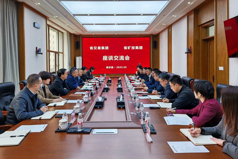 5月8日,交易集團黨委副書記、副董事長、總經理夏明禹帶隊拜訪黑龍江省地礦投資集團有限公司(以下簡稱省地礦投資集團)。省地礦投資集團黨委書記、董事長藍志勇接待了夏明禹一行。省地礦投資集團黨委副書記、總經理李志峰,黨委委員、副總經理魏雪松,黨委委員、金威達公司經理方勤銘,黨委委員、總會計師蘇姝,交易集團副總經理單勇,及雙方有關部門和權屬企業負責同志參加座談。